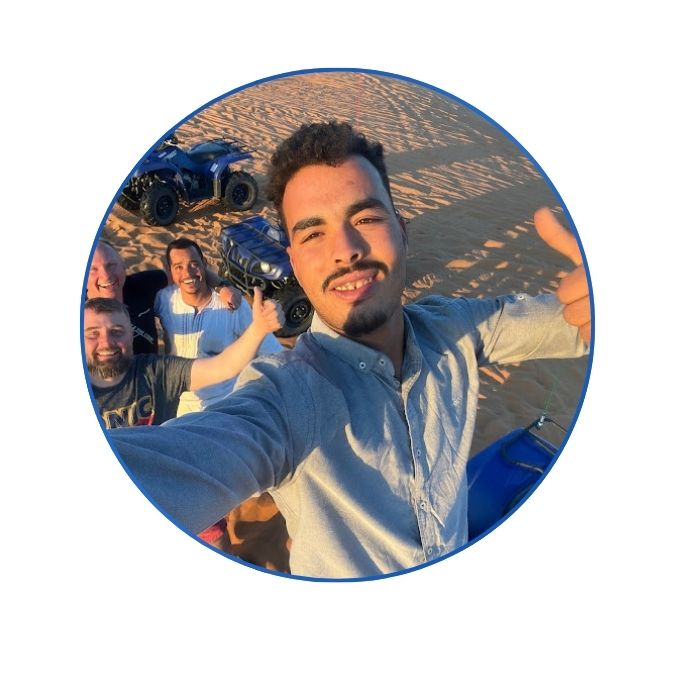 Cada nuevo día es una bendición, trabajamos duro para mejorar la calidad de nuestro servicio y satisfacer plenamente a nuestros clientes. Con años de experiencia en la organización de aventuras en el desierto para los amantes de las motos KTM, los quads o los buggies, hemos aprendido que la emoción y la seguridad van de la mano. En el equipo de Desert Ouzina Quads creemos que su comodidad es nuestra prioridad, y nuestra misión es hacer que su experiencia en el desierto con nosotros sea inolvidable.